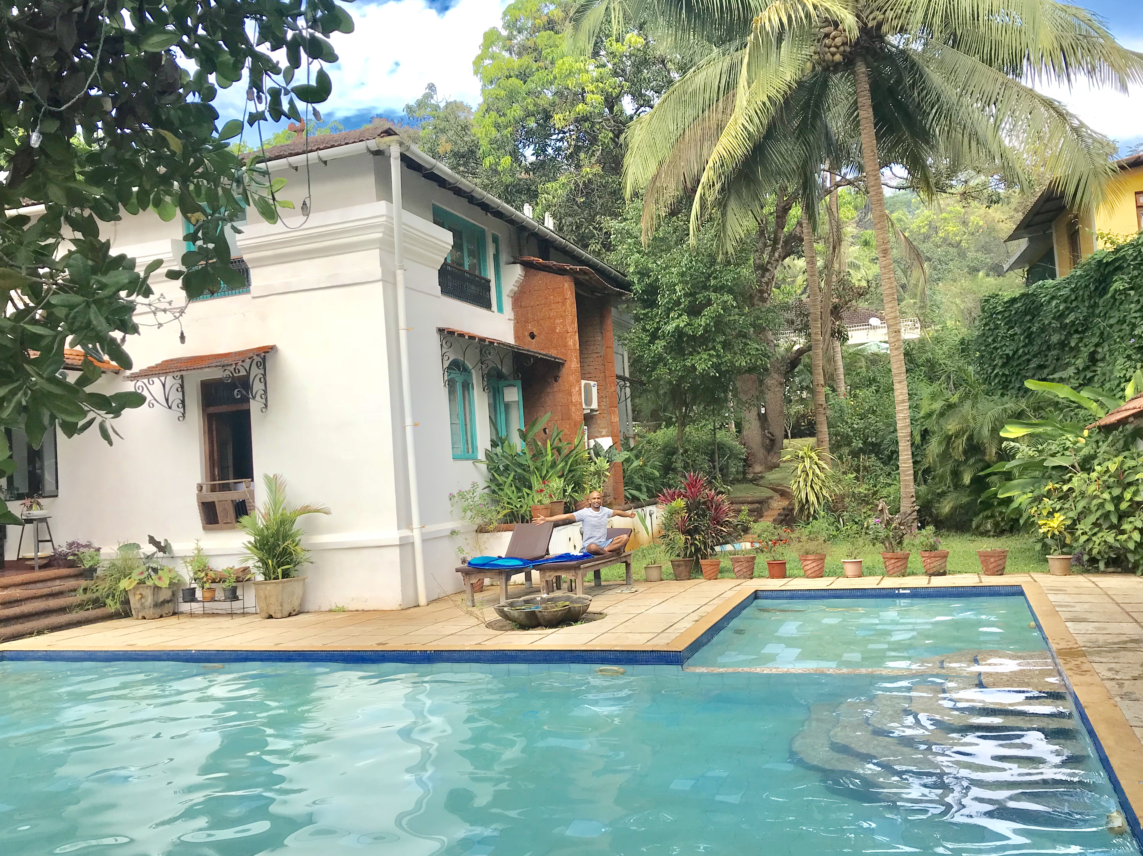 Island Living. Very thoughtfully, Sanoop’s sister-in-law had checked Sanoop and me into a lovely Guest House, a few kilometres from her parents’ house where everyone else was staying. I love the family, and it was nothing but relaxing and fun to spend time with them, connect with them, get to know them, but it was nice to have our own space. In the mornings, we’d do sunrise yoga on the roof, I’d swim 50 or so laps in the chilly pool water, S would meditate and we’d have fresh fruit and our own homemade mysli for breakfast by the pool. Then we’d walk or drive past the rainbow of Portuguese villas, which all had giant paper Christmas stars hanging from roofs and awnings, and rice paddy fields to get to the family house. At night, after several hearty meals around the circular dining room table or in the gazebo at the back of the garden between palm trees and rice paddy fields inhabited by a peacock family, games of Scrabble on the verandah, snoozing and reading (I read The White Tiger, wonderful, hilarious book!) in hammocks shaded by palm trees in the garden and excursions around most of Goa, we’d drive back to our pretty abode, sometimes accompanied by a kid – S’s niece and nephew took turns sleeping between us, and then we’d wake up and play in the pool, play chess, sketch houses and superheroes and fold Christmas stars from slips of paper I brought from Denmark.