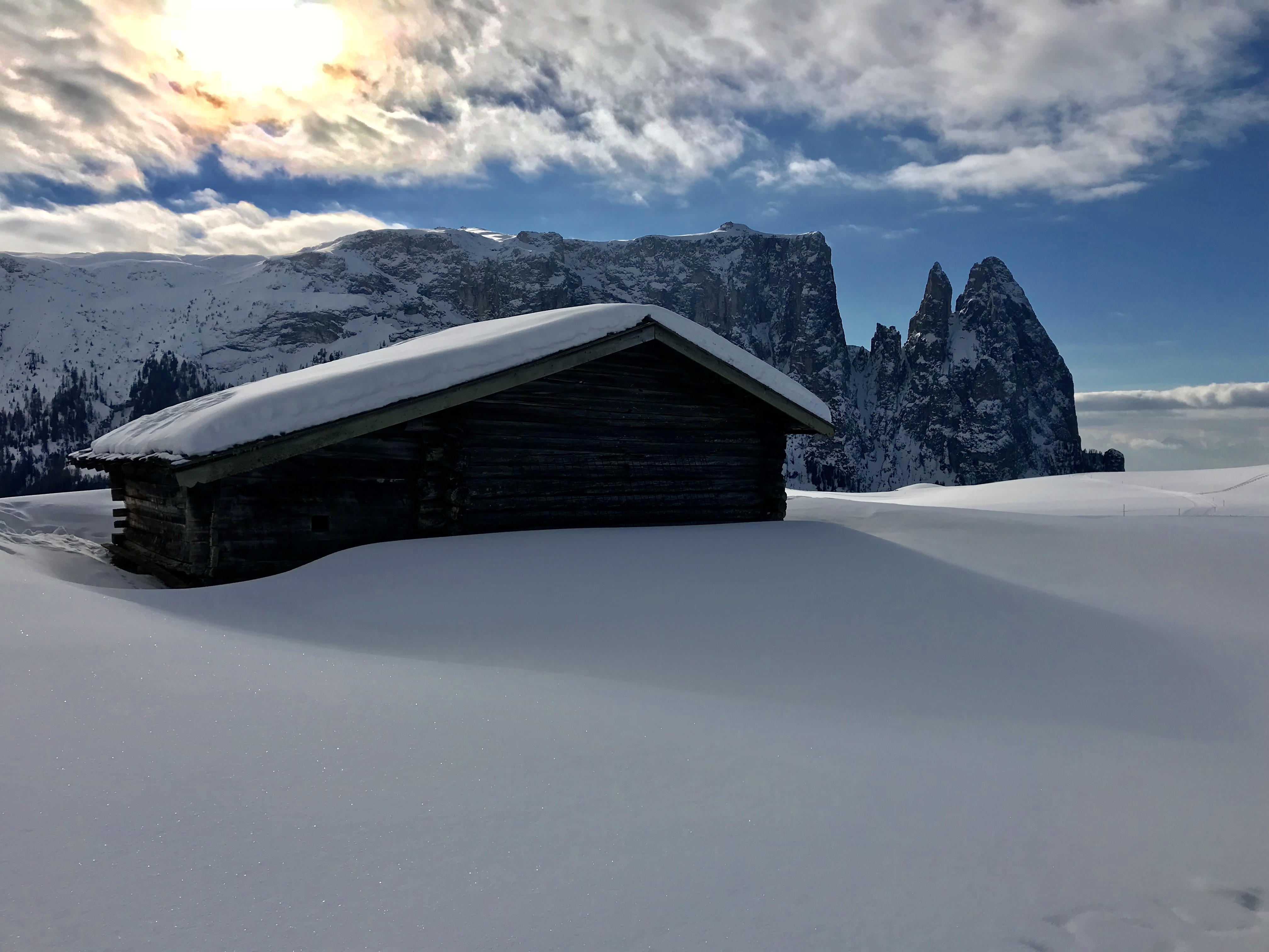 Dolomiti Superski. A week in my kind of paradise. This place is just pure bliss. And it’s lovely to see how it’s just improving year by year in terms of facilities, while the weather and conditions are as incredible as we recall: it’s cold enough for the snow to be perfect; sunny enough for the vibe to be glorious. Every day follows the same rhythm: We meet for a wholesome breakfast at 7:30am; I take Sanoop to the ski school for his private morning lessons, which generally go really well – he has one day of feeling frustrated and hating it, being totally unlike himself, but then we talk about it and get him calmed down with nice words (no one is expecting anything; he’s allowed to hate it; but it will be better; it’s completely natural to feel exhausted, especially as this is such foreign territory; and also, how often is it that we, as adults, learn something completely new?; sometimes it can be rewarding to push yourself a little bit; please just hang in this week, for me, for yourself, etc…) and glühwein, and by the end of the week, he’s getting the hang of it and mastering the blue and red slopes in style; my dad, brother and I ski together all morning; we all meet for lunch in the sun around 1pm; everyone does different things in the afternoon, ski, hike, lick sun, hang out in the sauna, read… I ski as much as possible, with my dad and brother or on my own. I’m so happy and relieved that my knee is strong enough for this. Sanoop spends the afternoons doing all of the other stuff listed, saving skiing for the mornings, and I am happy knowing that he is happy relaxing and hanging out in the winter wonderland – and knowing that I am happy, haha. When the ski lift closes and darkness falls, we all gather in the lobby, bar and restaurant for an evening of good food and good wine and good conversation and good shared quiet time. So hyggeligt. Because the hotel is quite isolated in its top-of-the-slope location, it’s most natural to spend the evenings here. We love that.